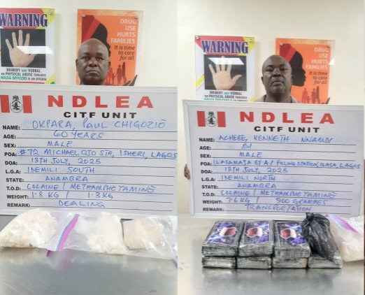 A subsequent raid on Okpara’s residence, according to a statement by Mr. Femi Babafemi, the NDLEA Director, Media & Advocacy, at 72 Michael Ojo Street, Isheri, led to the recovery of an additional 1.8kg of cocaine and 1.3kg of methamphetamine, bringing the total haul linked to the drug kingpin to 11.6kg.