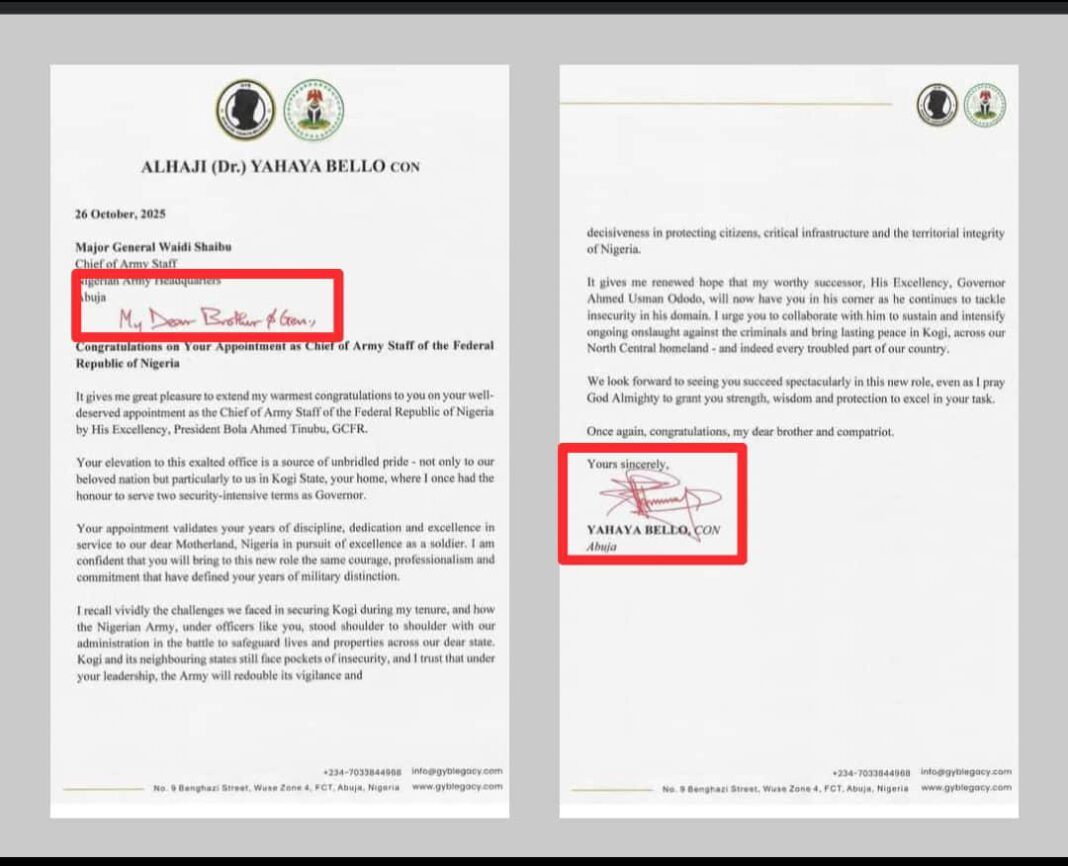 Bello’s letter wasn’t written to congratulate; it was written to command. It wasn’t meant to honor Major General Shaibu; it was meant to remind him who used to give orders. His signature wasn’t just ink on paper, it was the lingering fingerprint of political addiction.