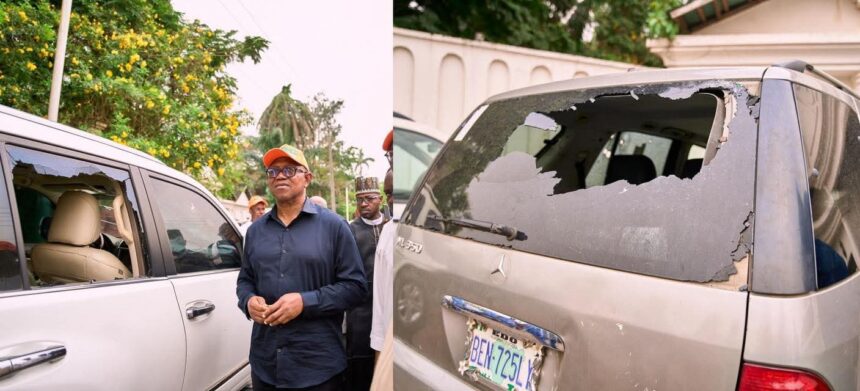Unidentified gunmen on Tuesday attacked the convoy of Labour Party’s 2023 presidential candidate, Peter Obi, at the residence of former Edo State Governor, John Odigie-Oyegun, in Benin City.