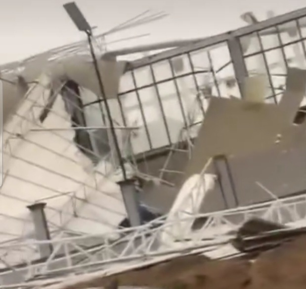 According to reports, powerful winds lifted sections of the terminal’s roofing and flung them onto adjoining roads, disrupting traffic and raising fresh questions about construction quality and resilience.